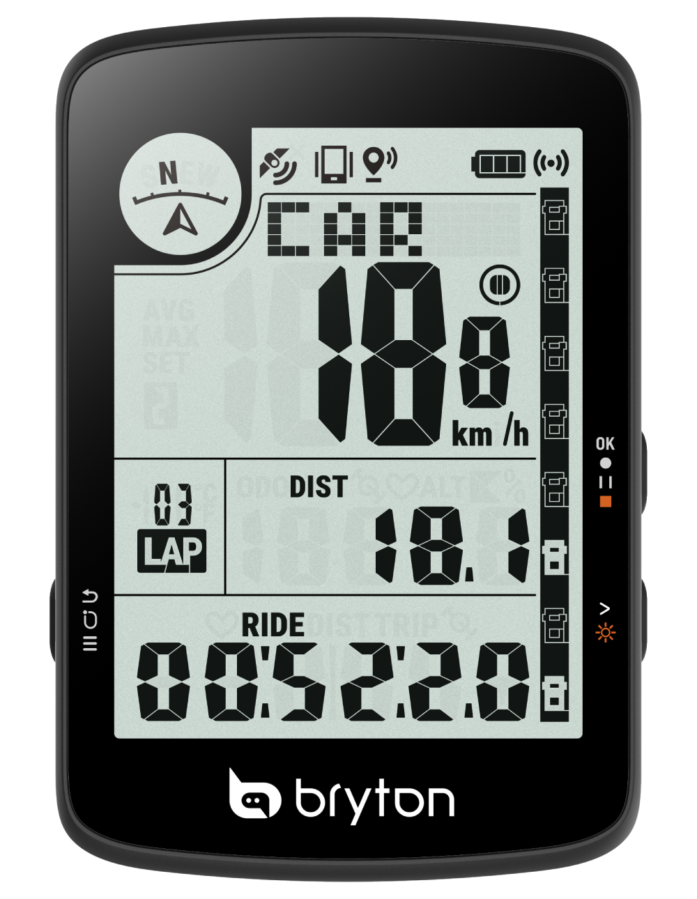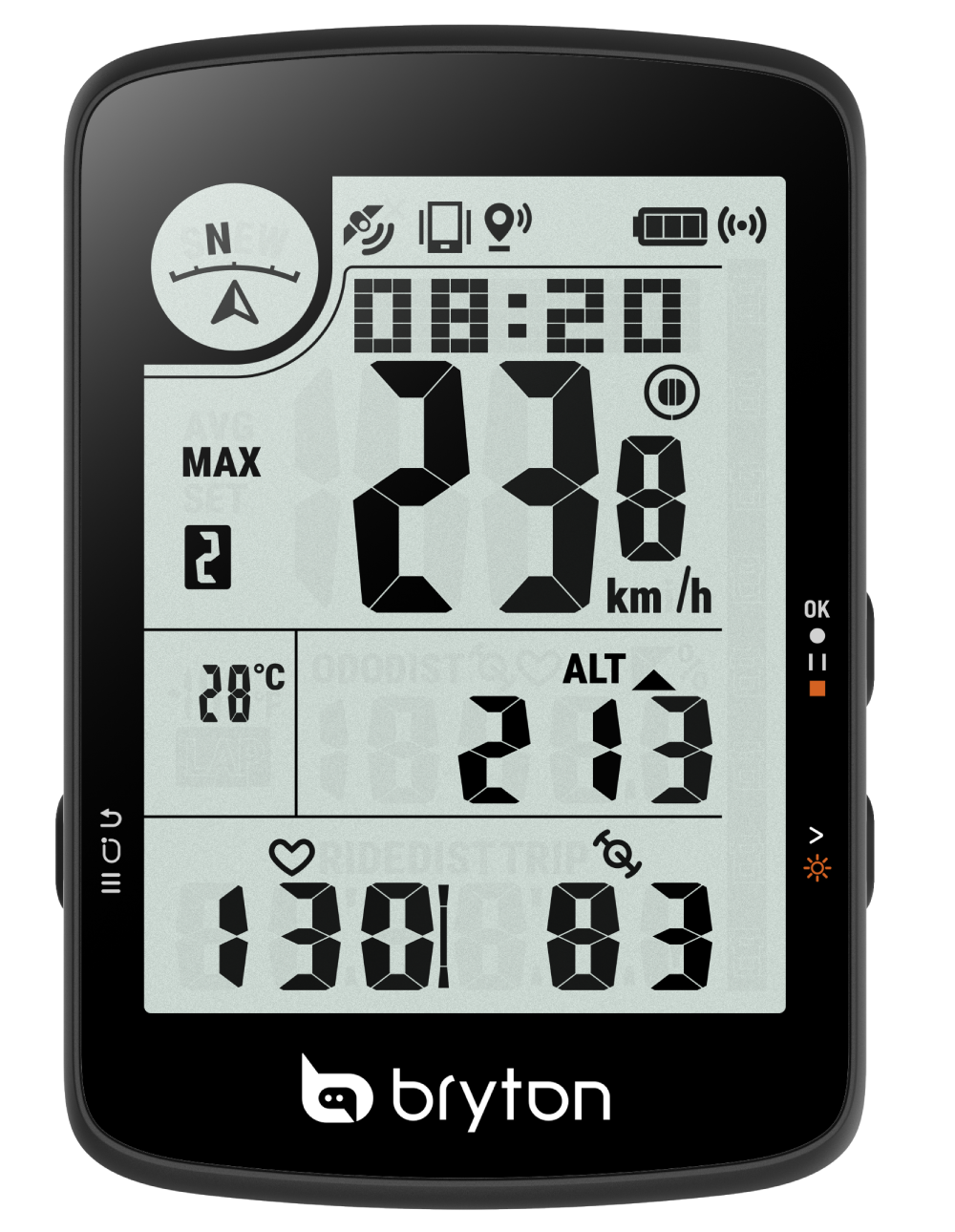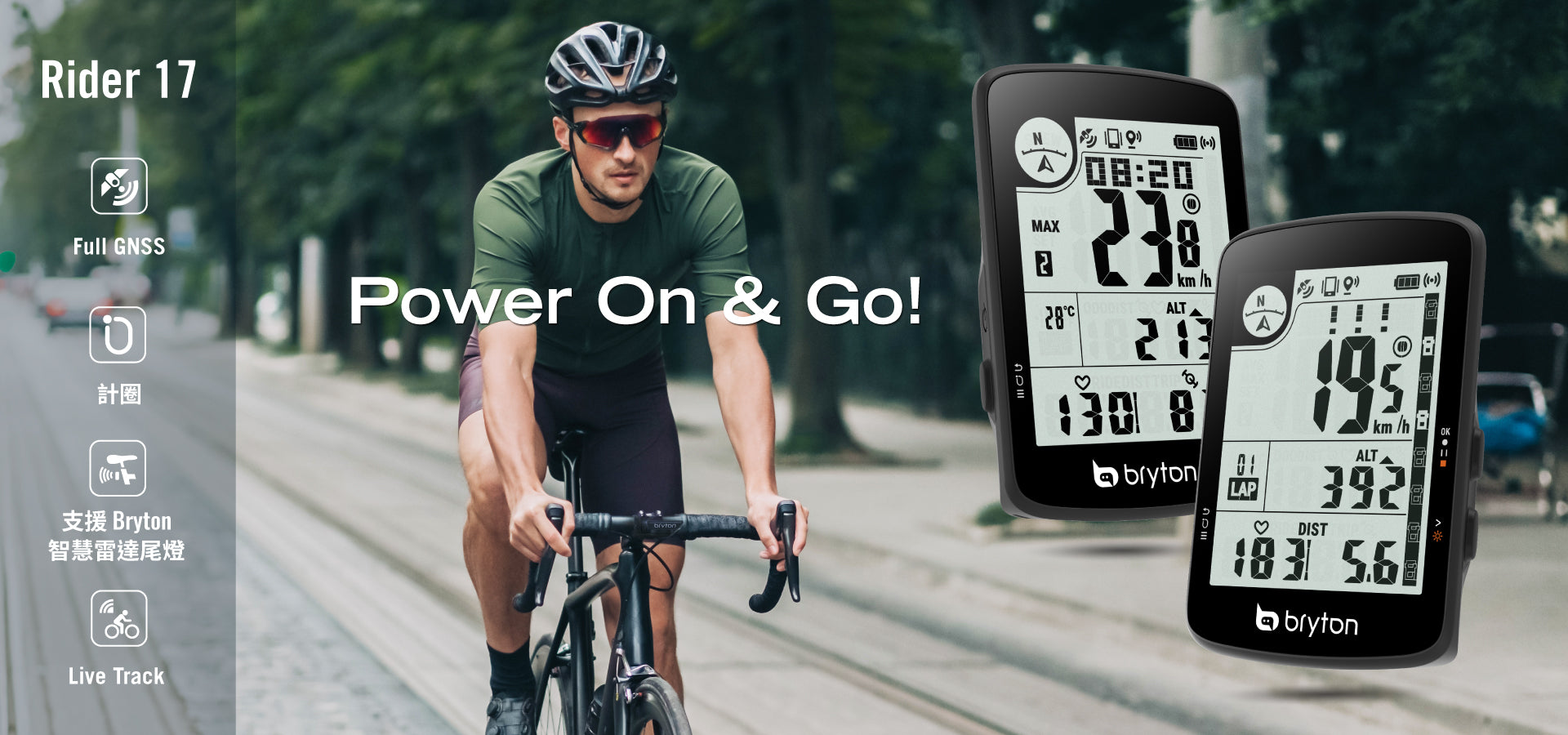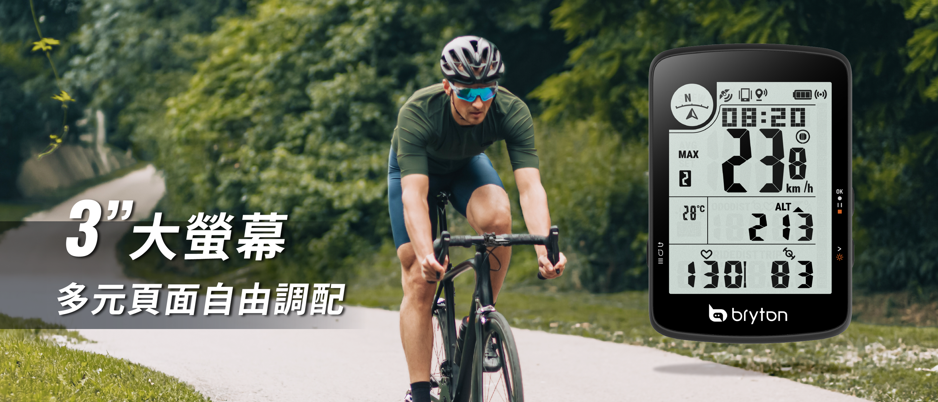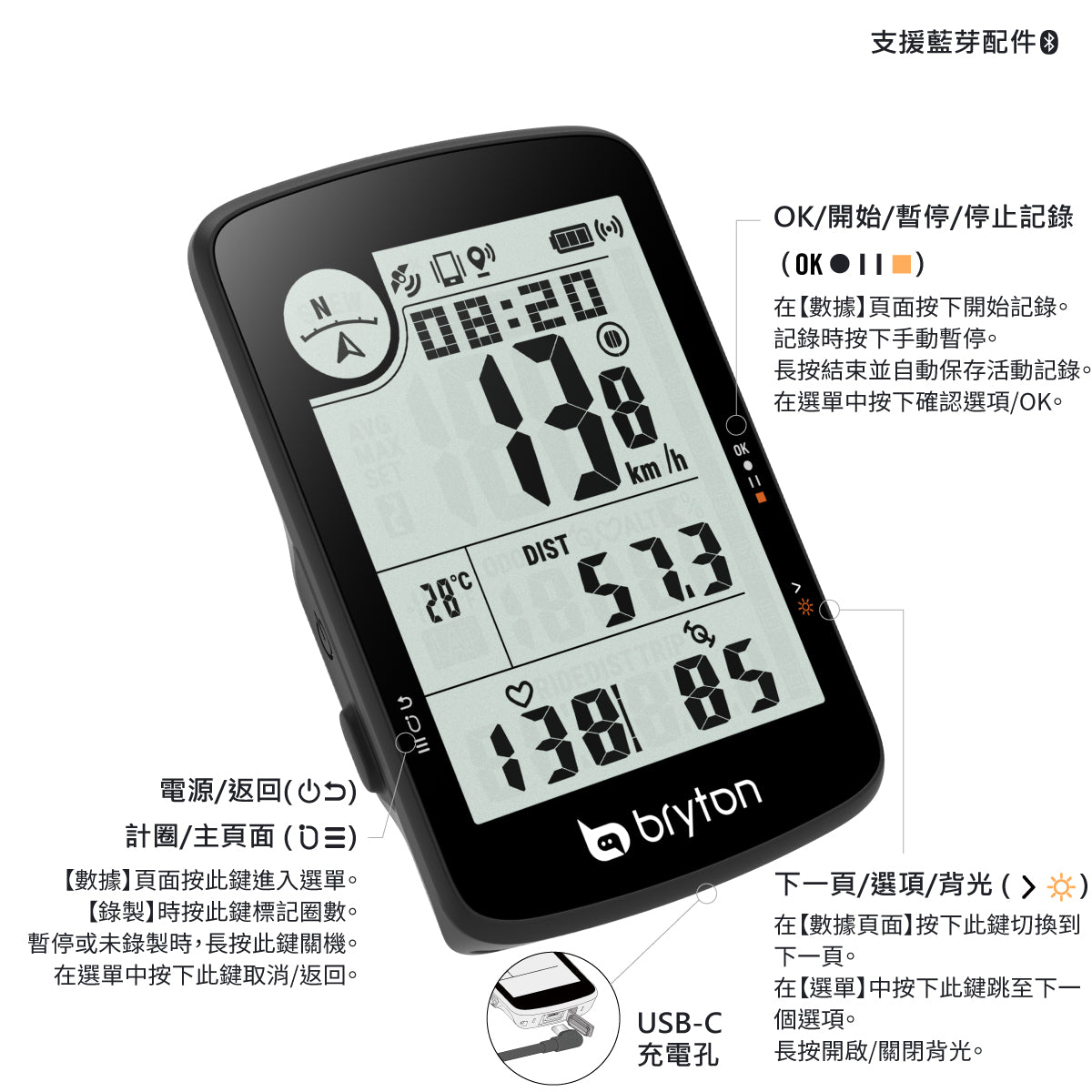提供 23 種功能,包含時間、速度、距離、踏頻、高度、心率、溫度、計圈以及 GPS 行進方向,幫助您清楚掌握各種騎乘狀況。韌體更新只需透過 Bryton Update Tool 或 Bryton Active App 即可迅速完成,既方便又有效率。