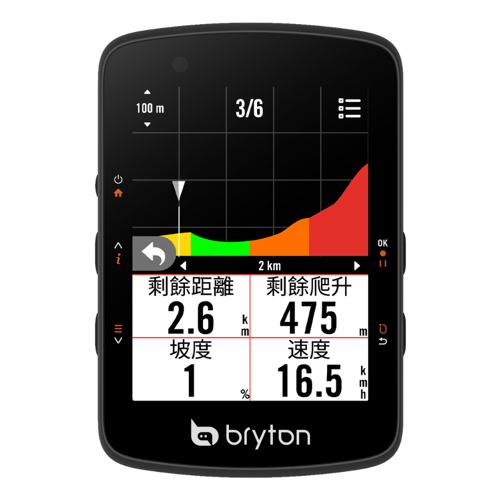 當你接近坡段時,會自動切換至坡段資訊畫面,以直觀的全彩圖像呈現距離、坡度、剩餘爬升高度。讓你掌握節奏、穩定輸出,自信應對每次爬坡挑戰。